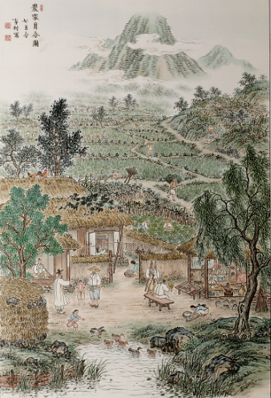 => 활기찬 마을의 모습, 12월의 세시풍속을 하는 모습이 보임